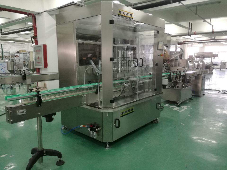 3、工作效率高,可搭配理瓶機(jī)、洗瓶機(jī)、直線旋蓋機(jī)、玻璃瓶貼標(biāo)機(jī)、自動噴碼機(jī)、收瓶機(jī)等組成一條自動化灌裝生產(chǎn)線;