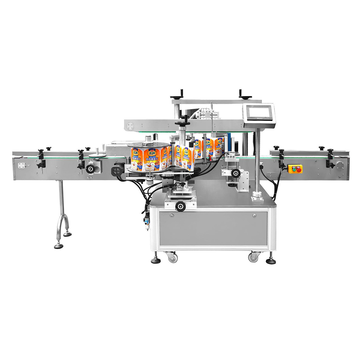 采用標準PLC+觸摸屏+標準傳感器電控系統(tǒng)控制,使用方便,維護簡單;具備無物不貼標,無標自動校正和自動檢測功能;人機交互界面中英文注釋和完善的故障提示功能、操作教導(dǎo)功能,故障排除說明;還可選配打碼和噴碼功能