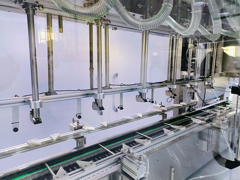 3、適配輸送系統,采用變頻調速裝置,可適配各種化學原材料的灌裝,全封閉式的運行軌跡,可以防止物料污染,提高安全防護條件。